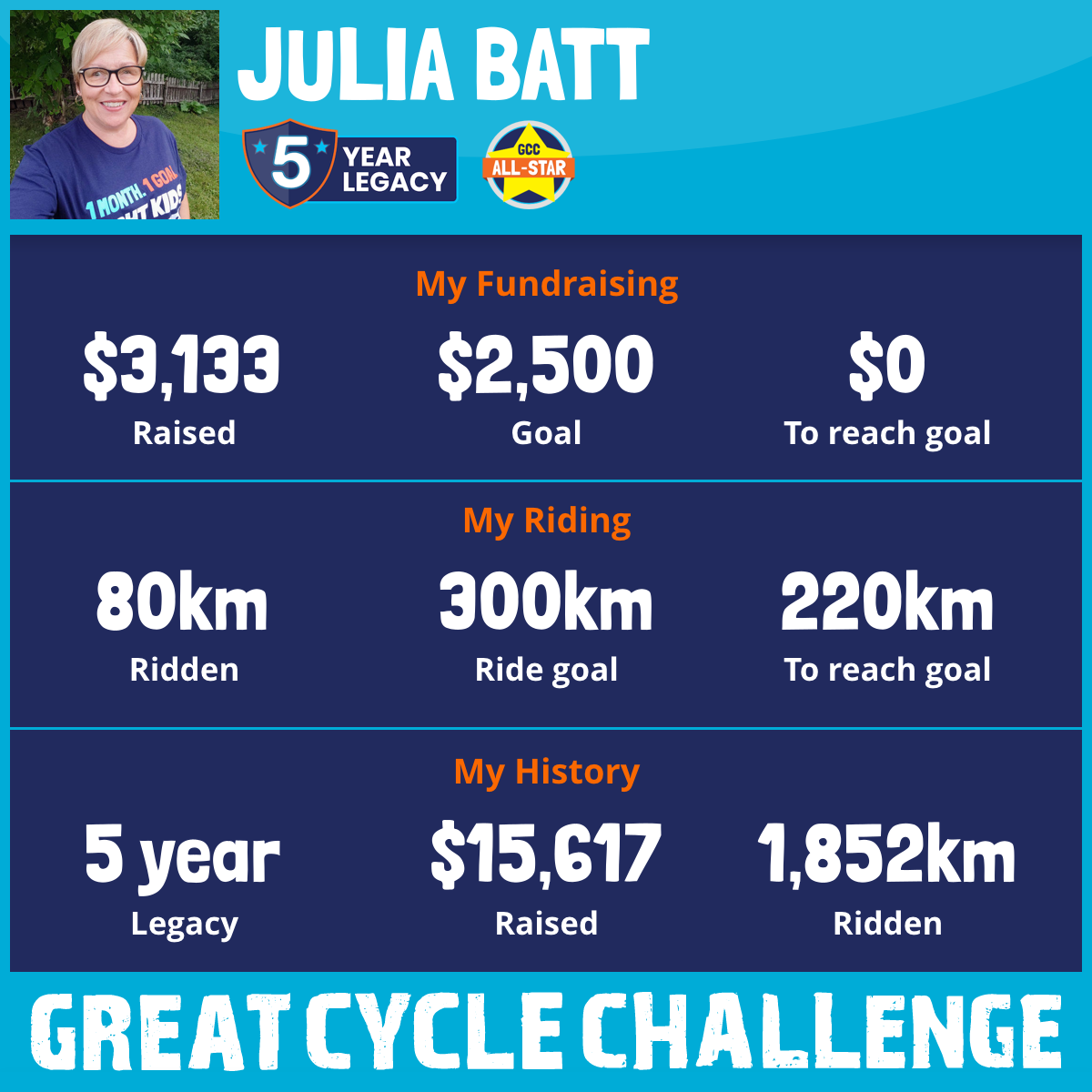 This August, I am taking part in the Great Cycle Challenge to fight kids' cancer!