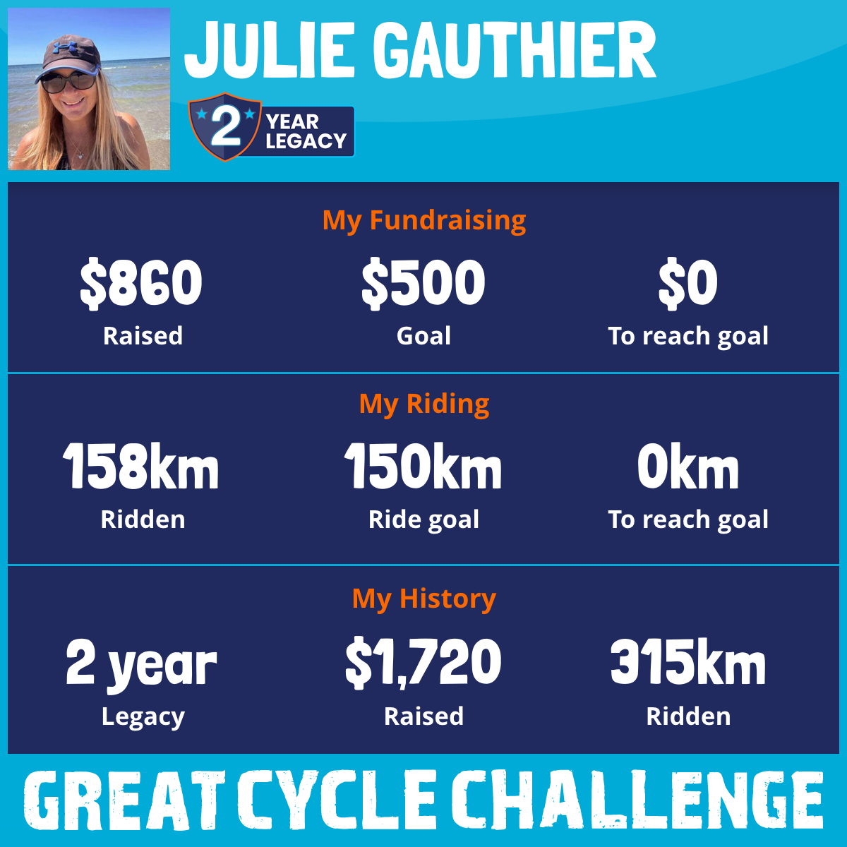 158 km Ridden$860 Raised2026