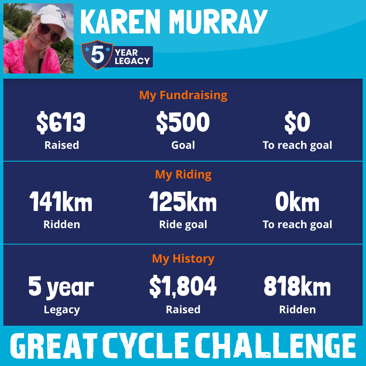 Cancer has affected so many i know, and I would love to help in anyway I can. Thanks to Great Cycle Challenge I am able to do what I have always loved; riding my bike.