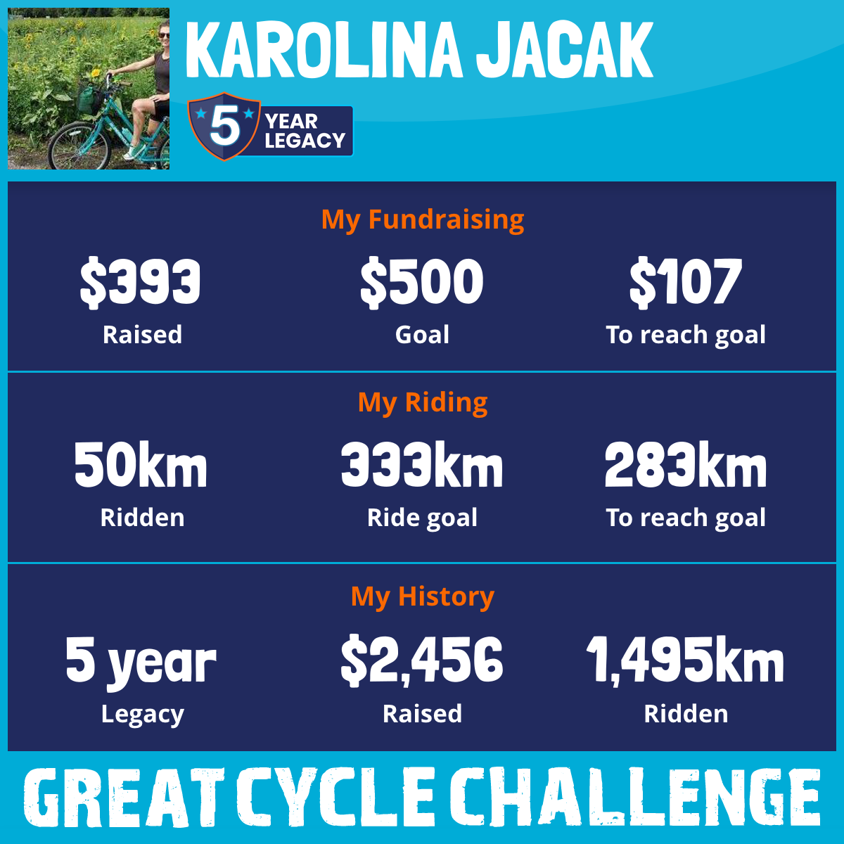 This August, I am taking part in the Great Cycle Challenge to fight kids' cancer!