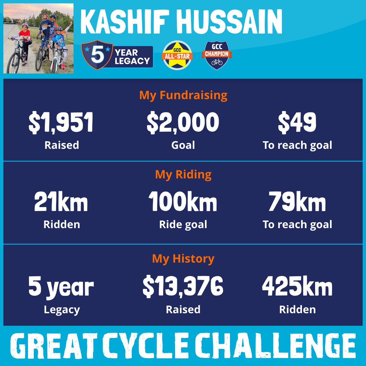 This August, Muneer, Ujaala, & I are taking part in the Great Cycle Challenge to fight kids' cancer!