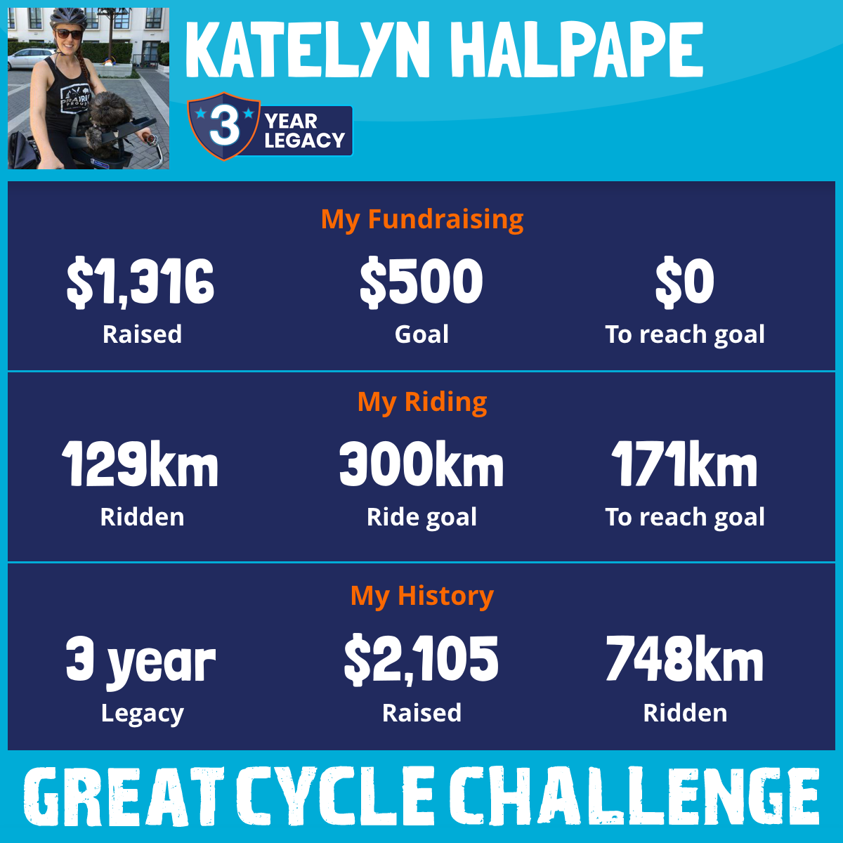 207 km Ridden$124 Raised2023