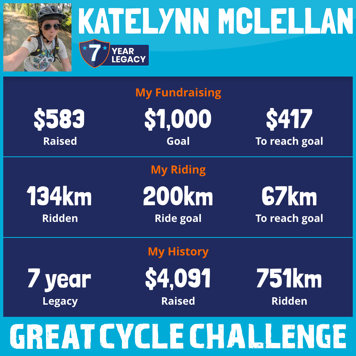 74 km Ridden$1,170 Raised2024