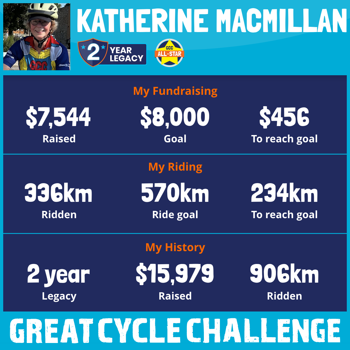 This August, I am again taking part in the Great Cycle Challenge to fight kids' cancer!