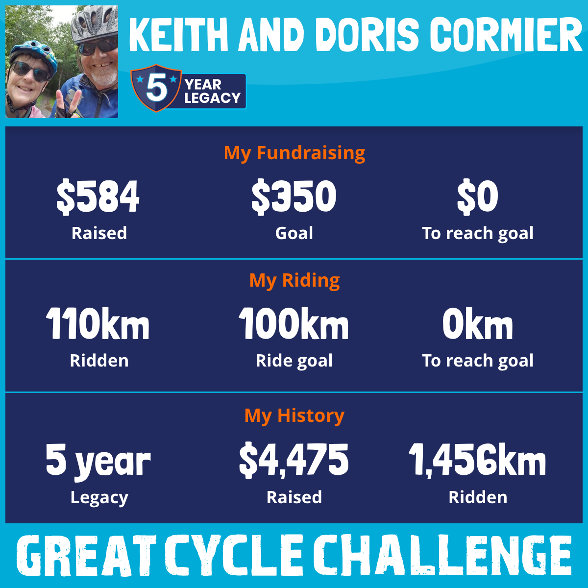 This August again this year 2025, Doris and I are taking part in the Great Cycle Challenge to fight kids' cancer! Our 4th riding as a team.