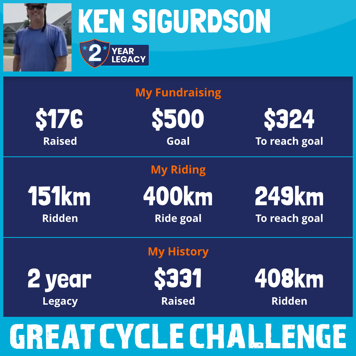 408 km Ridden$176 Raised2026