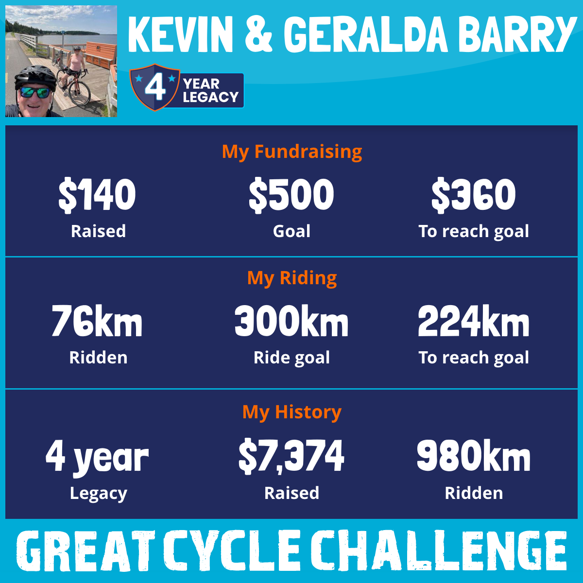 During the month of August, We are taking part in the Great Cycle Challenge to fight kids' cancer!
