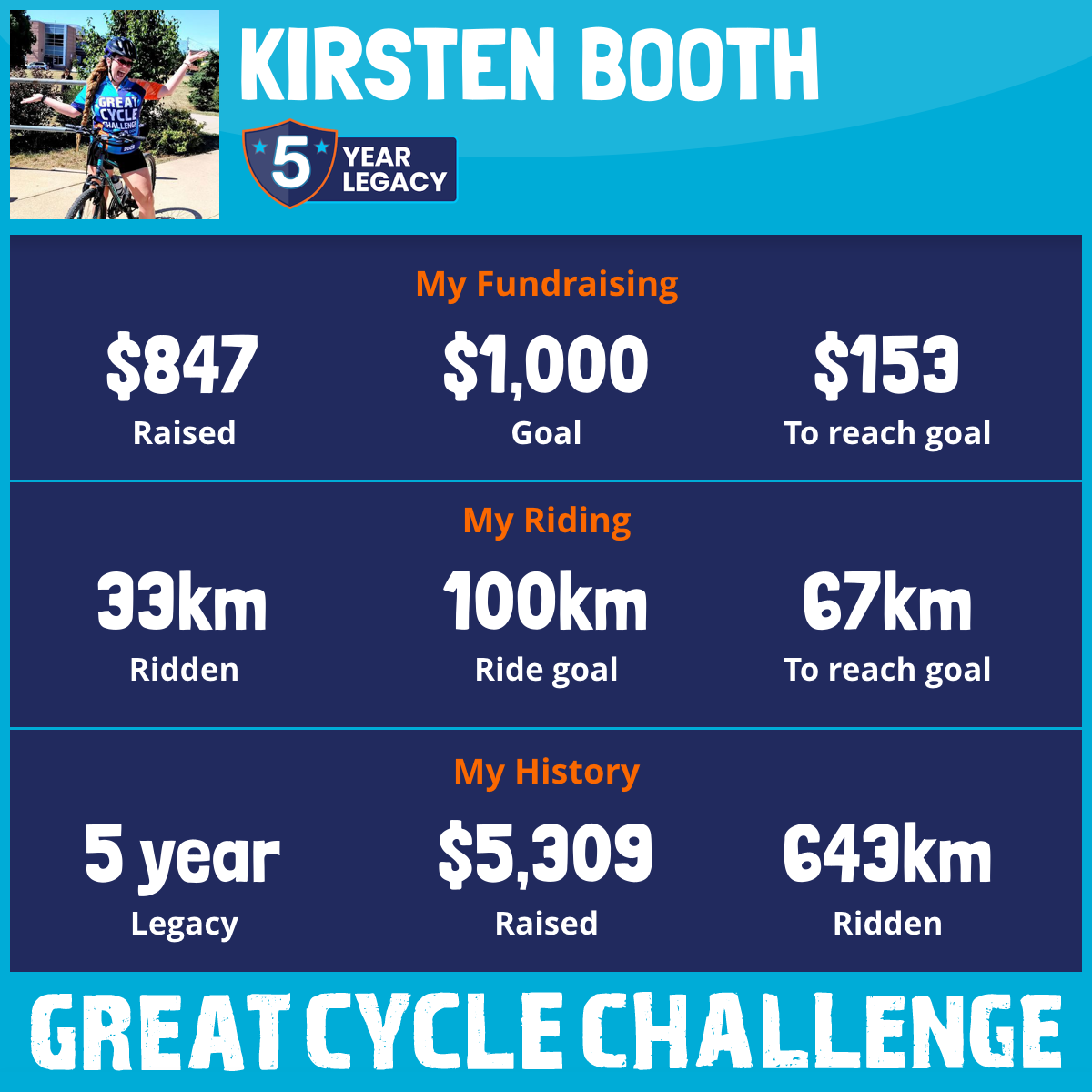 203 km Ridden$1,364 Raised2023