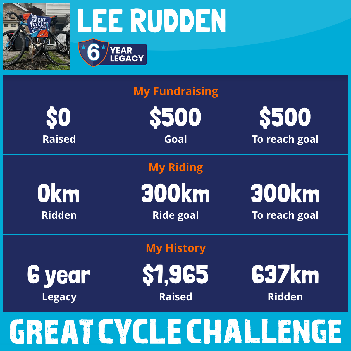 322 km Ridden$1,144 Raised2023