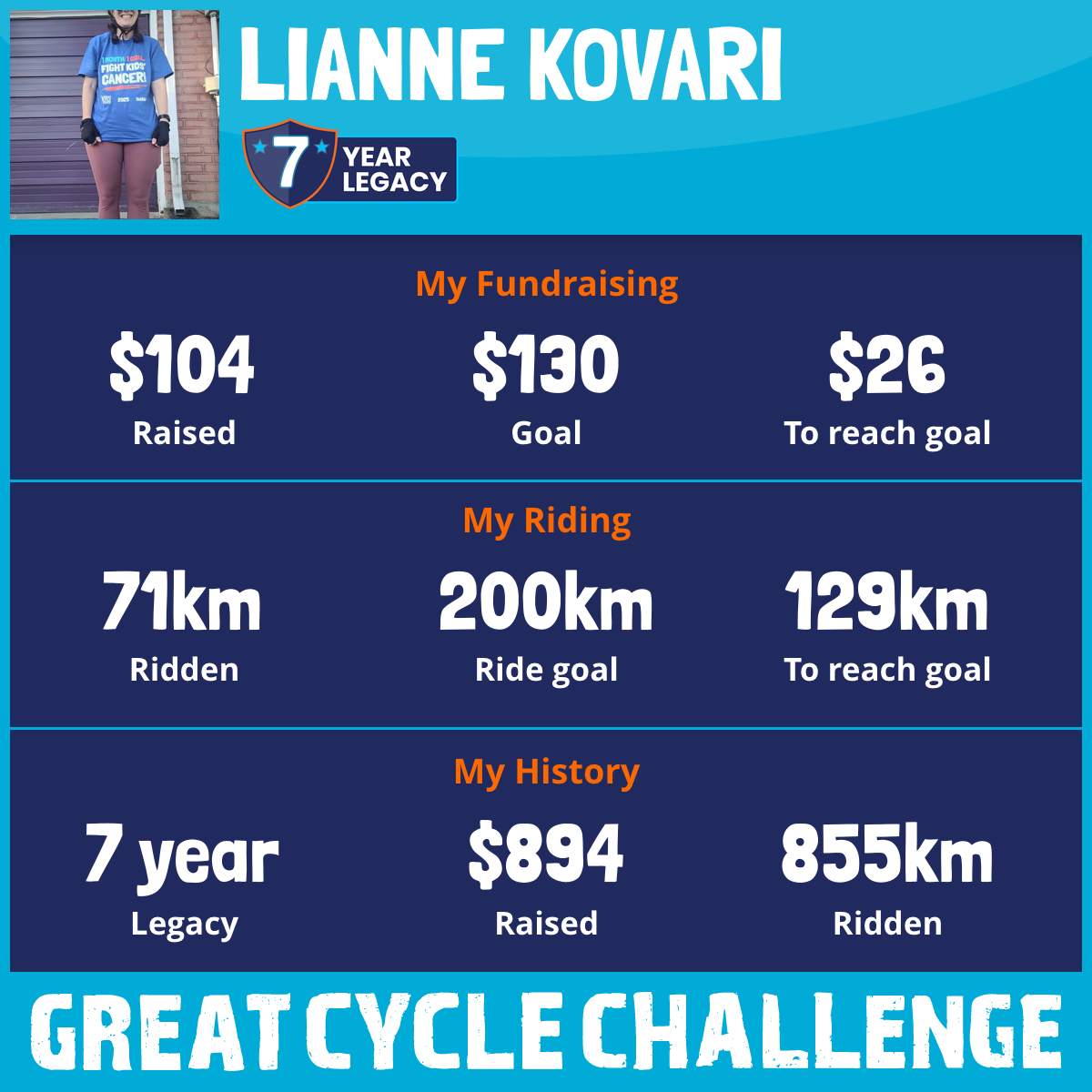 This August, I am taking part in the Great Cycle Challenge to fight kids' cancer!