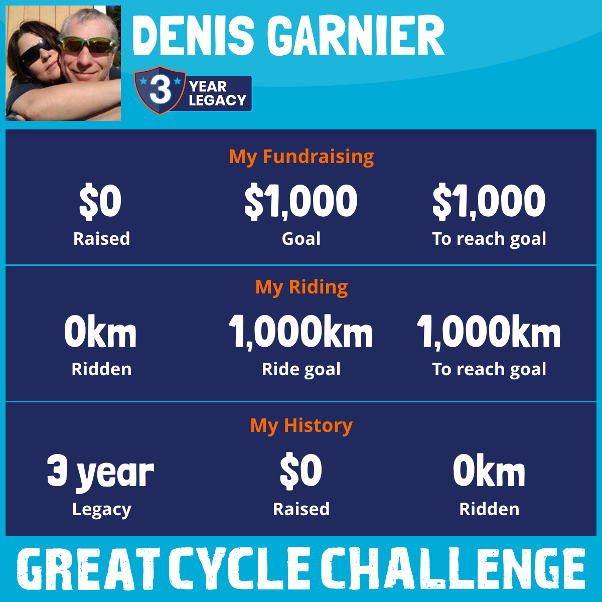 I am riding 1,000 km in memory of my friend, Ron Paterson. Please sponsor me and support my challenge to fight kids' cancer and save little lives.