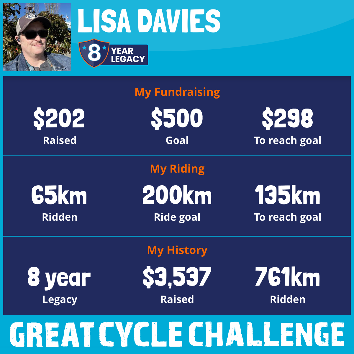 65 km Ridden$202 Raised2026
