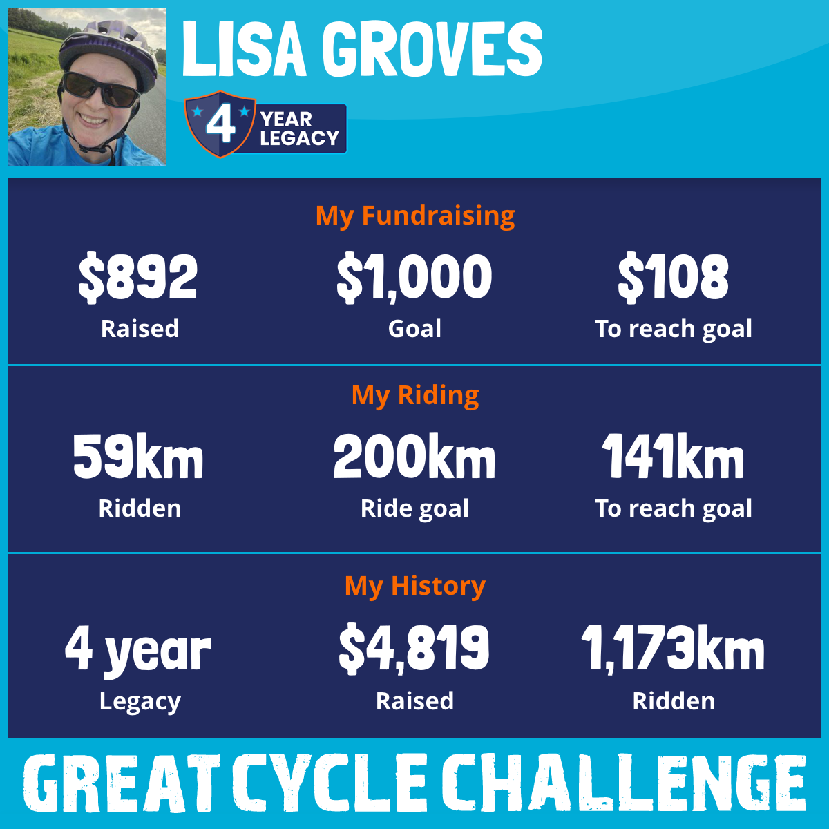 210 km Ridden$1,000 Raised2026