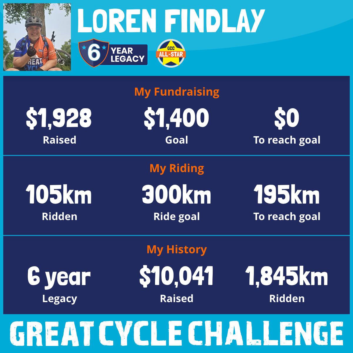 115 km Ridden$2,093 Raised2026