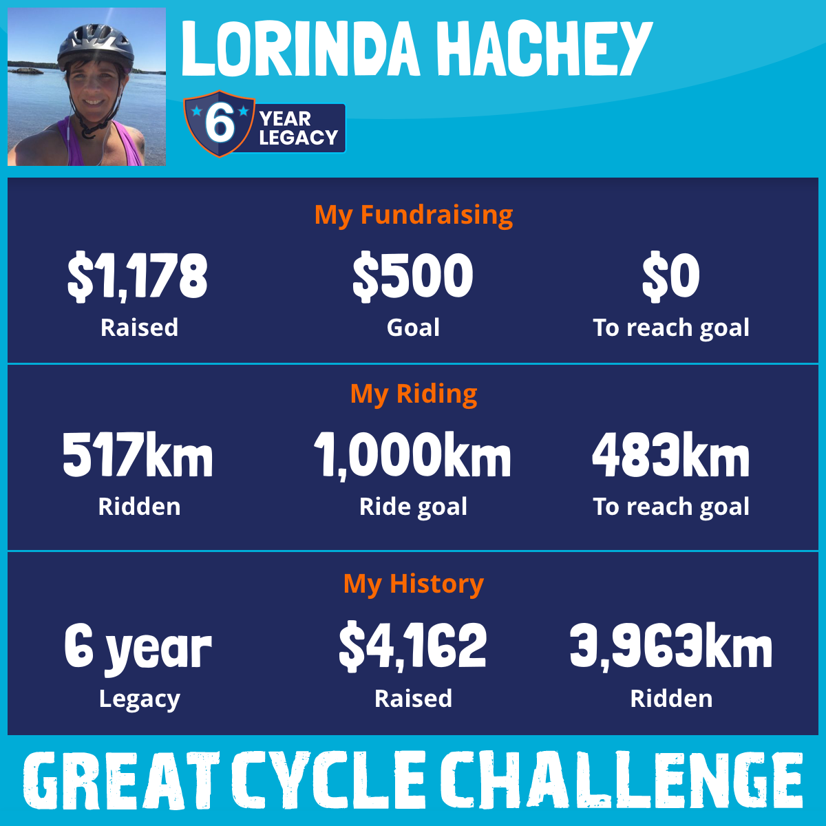 1,007 km Ridden$1,302 Raised2026