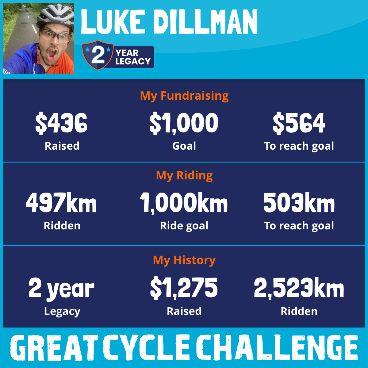 2,882 km Ridden$571 Raised2026