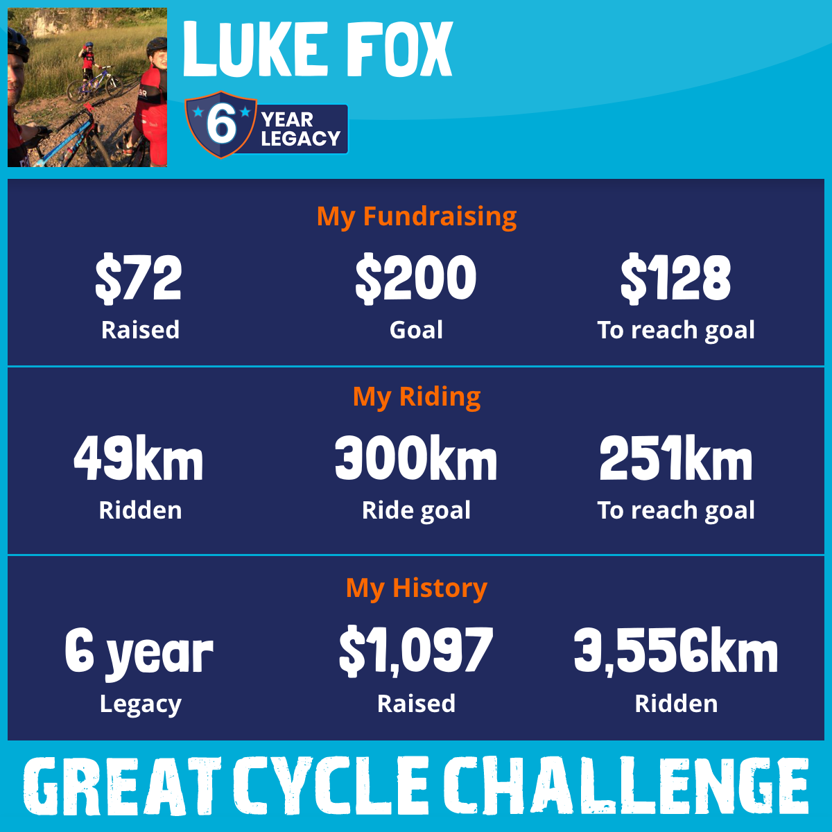 I am riding 300 km for Roy and in memory of Auntie Joey and Shirley. Please sponsor me and support my challenge to fight kids' cancer and save little lives.