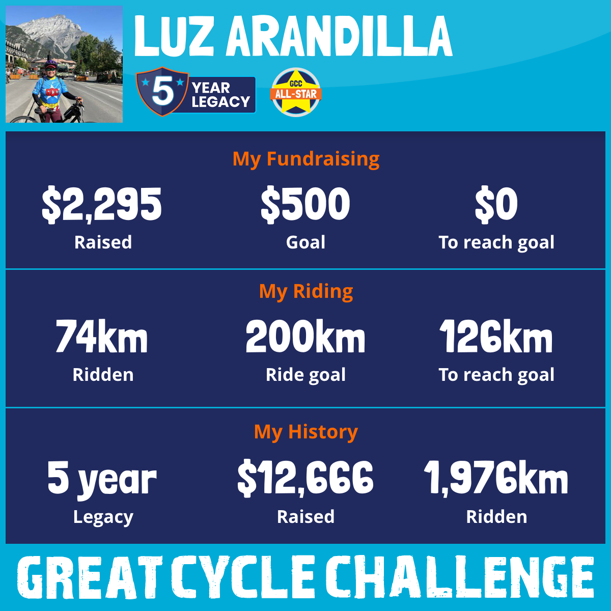 403 km Ridden$2,864 Raised2023