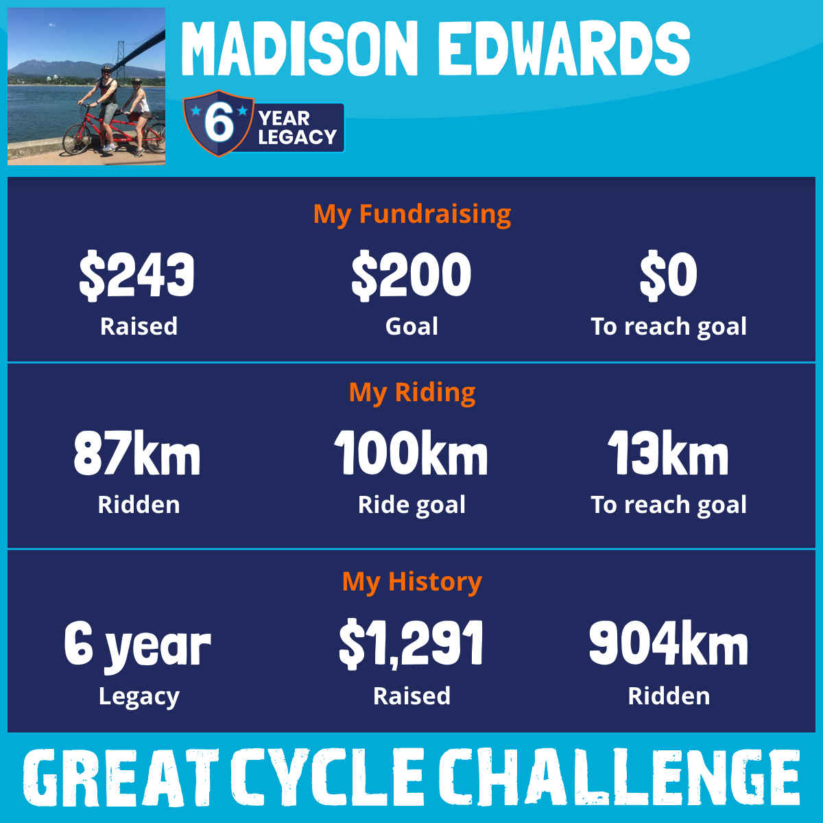 212 km Ridden$243 Raised2025