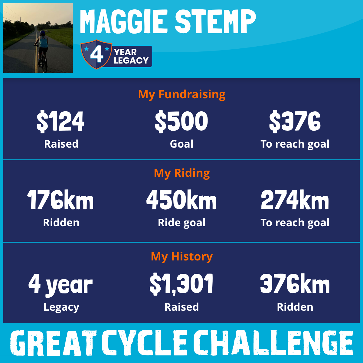 492 km Ridden$124 Raised2026