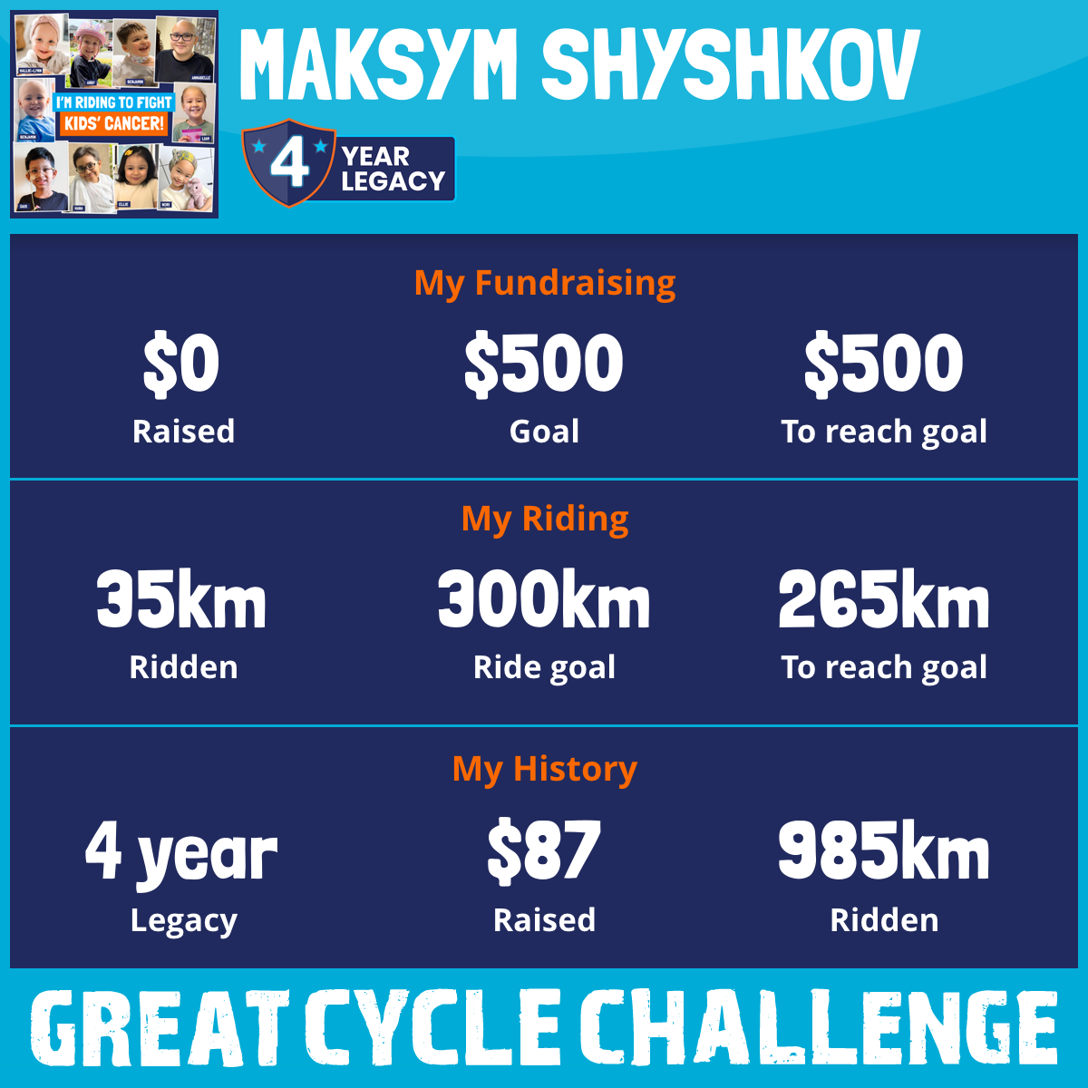 This August, I am taking part in the Great Cycle Challenge to fight kids' cancer!