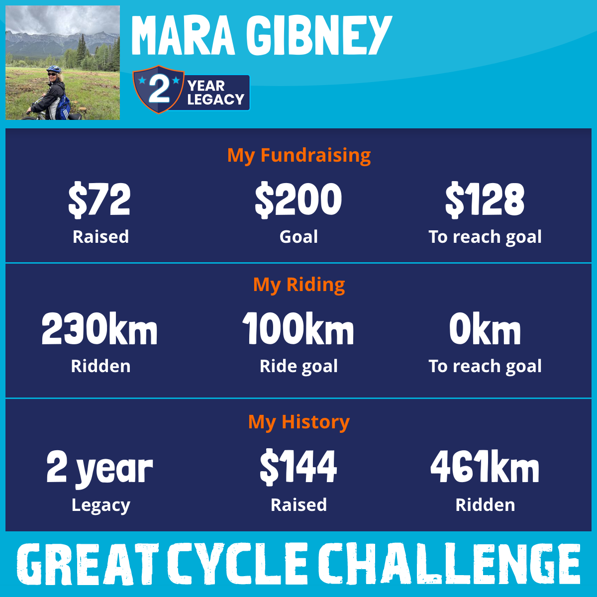 230 km Ridden$72 Raised2026