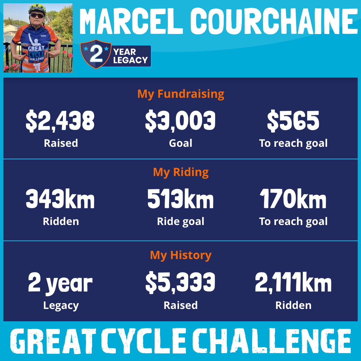 1,706 km Ridden$2,775 Raised2026