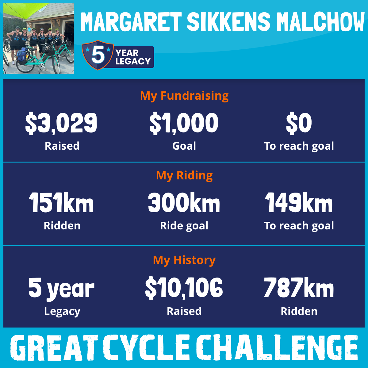 125 km Ridden$2,652 Raised2023