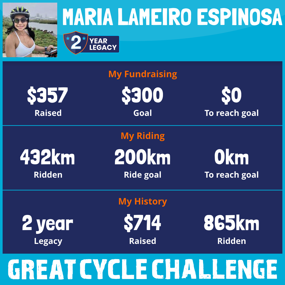 432 km Ridden$357 Raised2026