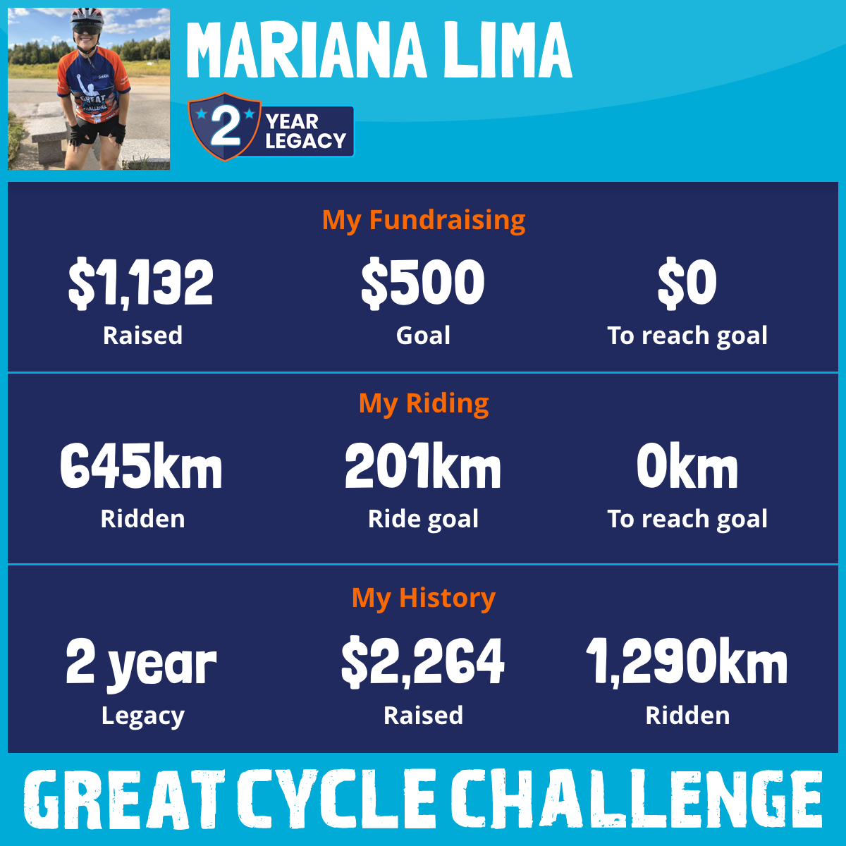 645 km Ridden$1,132 Raised2026
