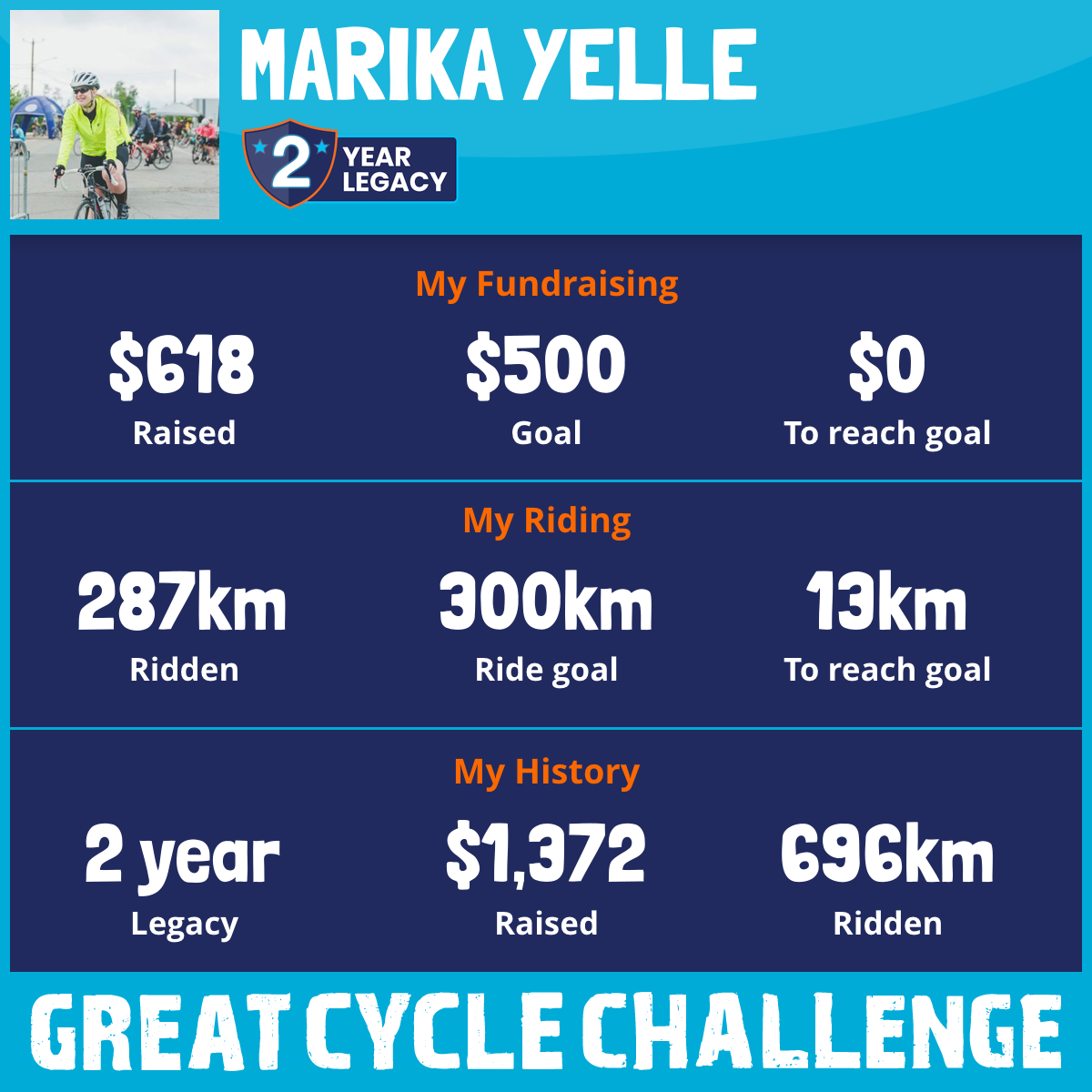 406 km Ridden$618 Raised2025