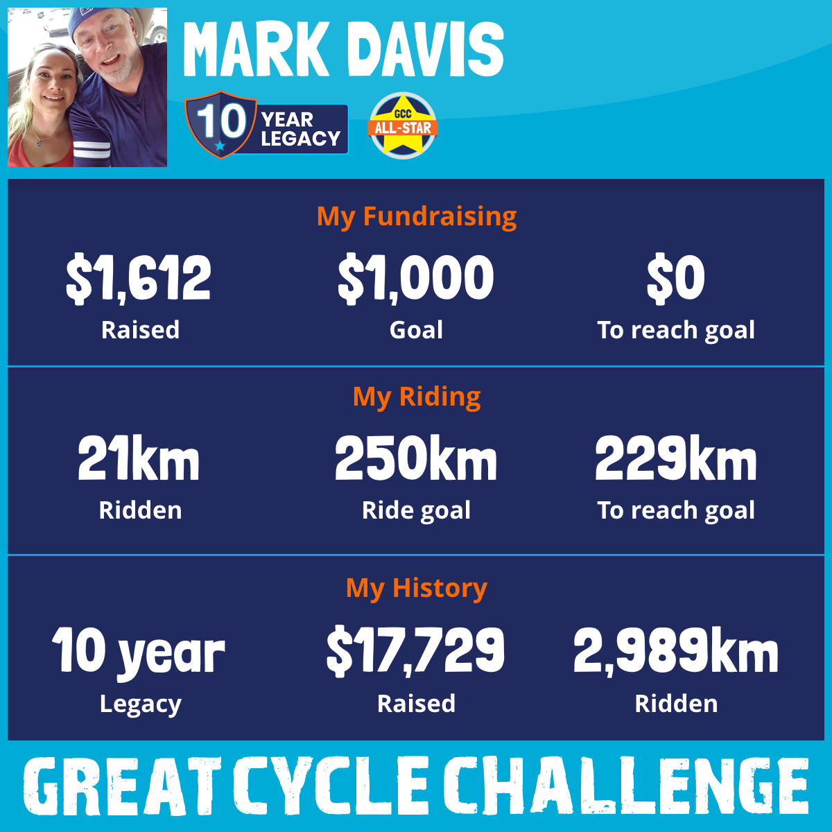 347 km Ridden$1,898 Raised2019