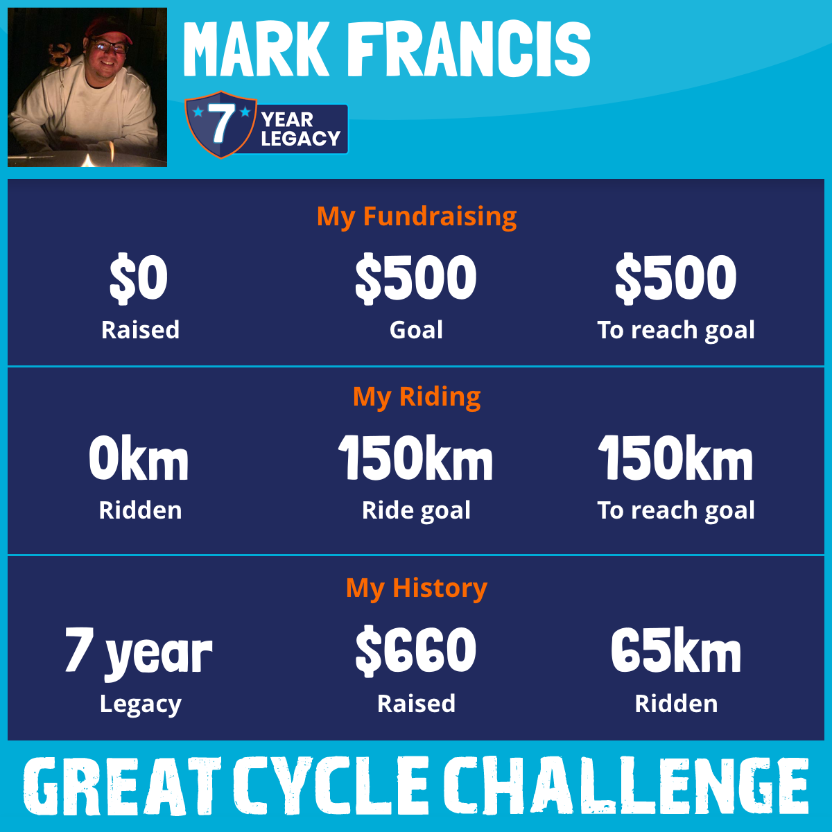 65 km Ridden$502 Raised2021