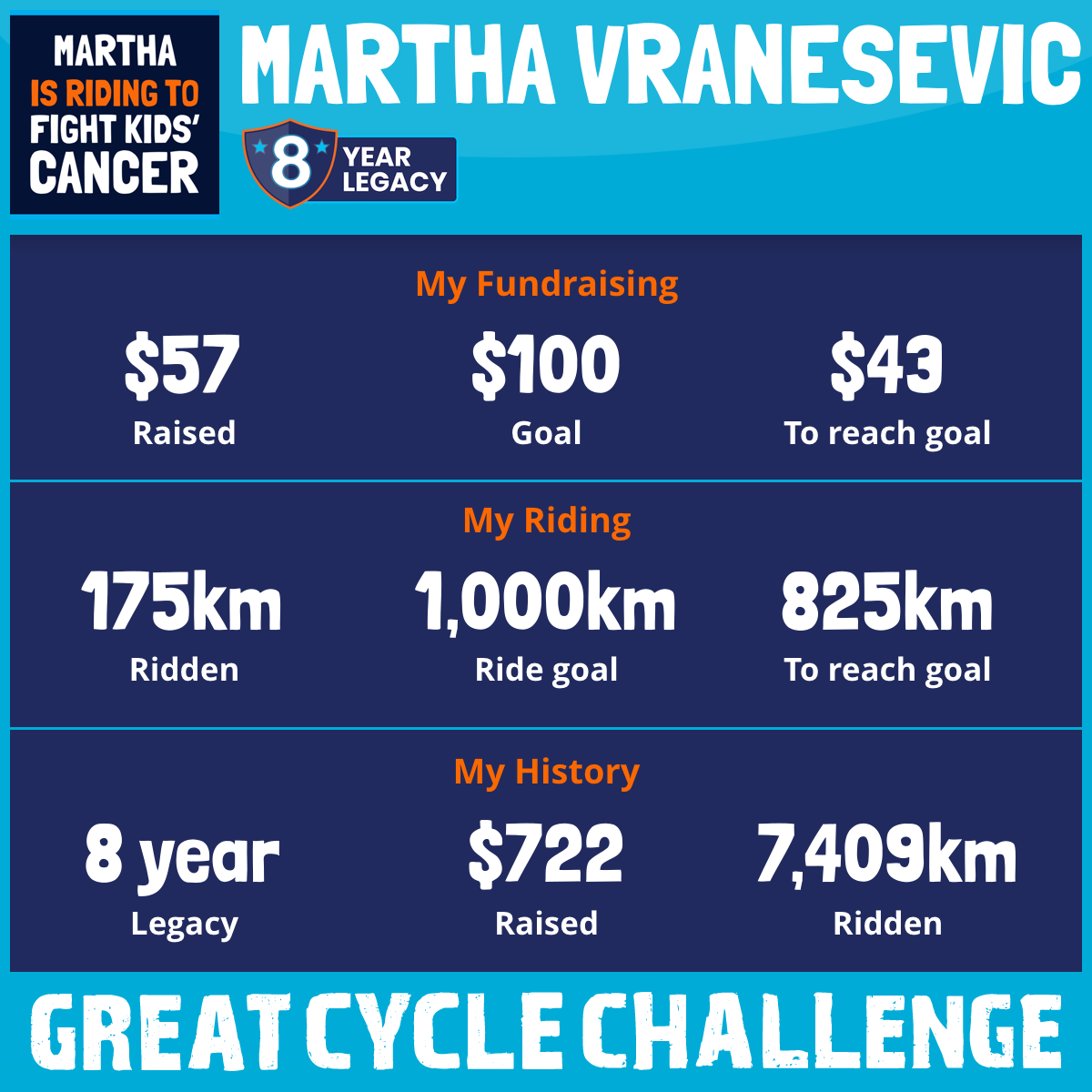 I am riding 600 km in memory of my husband, Janko Vranesevic. Please sponsor me and support my challenge to fight kids' cancer and save little lives.