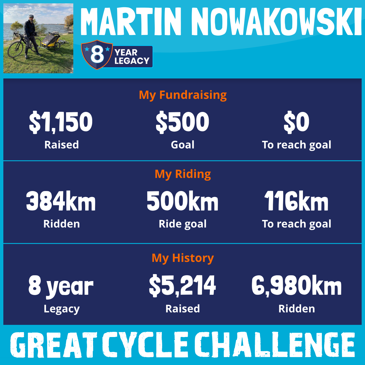 1,176 km Ridden$500 Raised2019