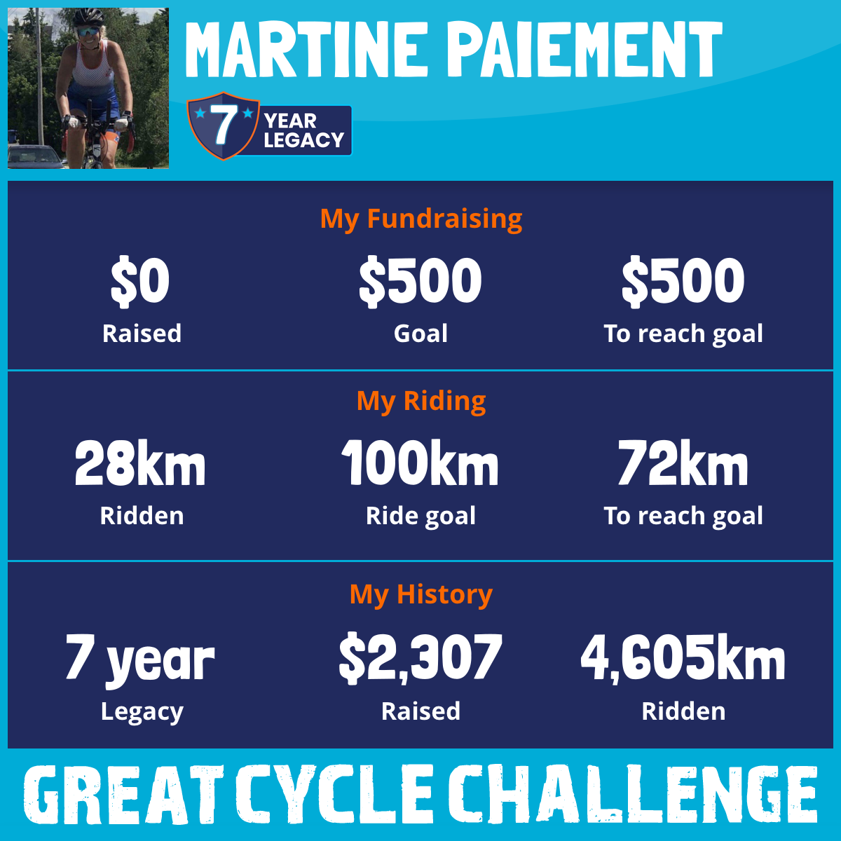 I am riding 100 km in memory of Flavie & maman & mon frère. Please sponsor me and support my challenge to fight kids' cancer and save little lives.