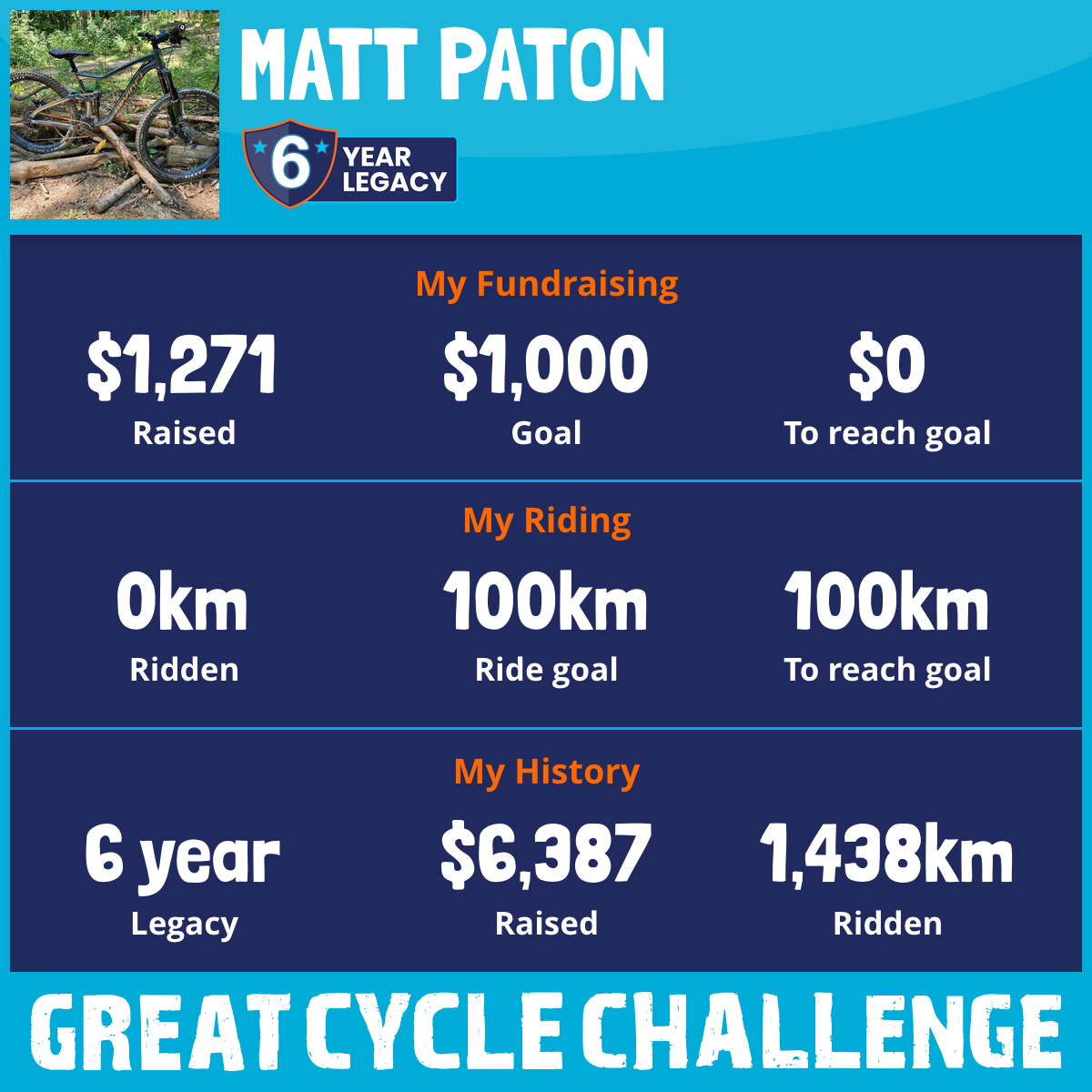 148 km Ridden$1,337 Raised2023