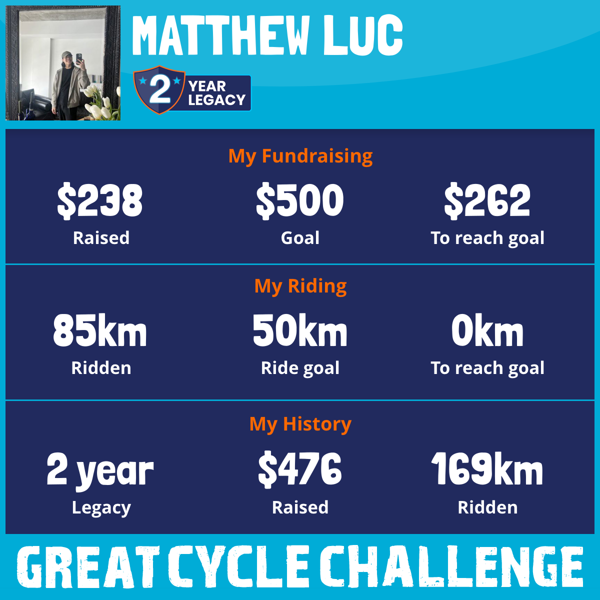 85 km Ridden$238 Raised2026