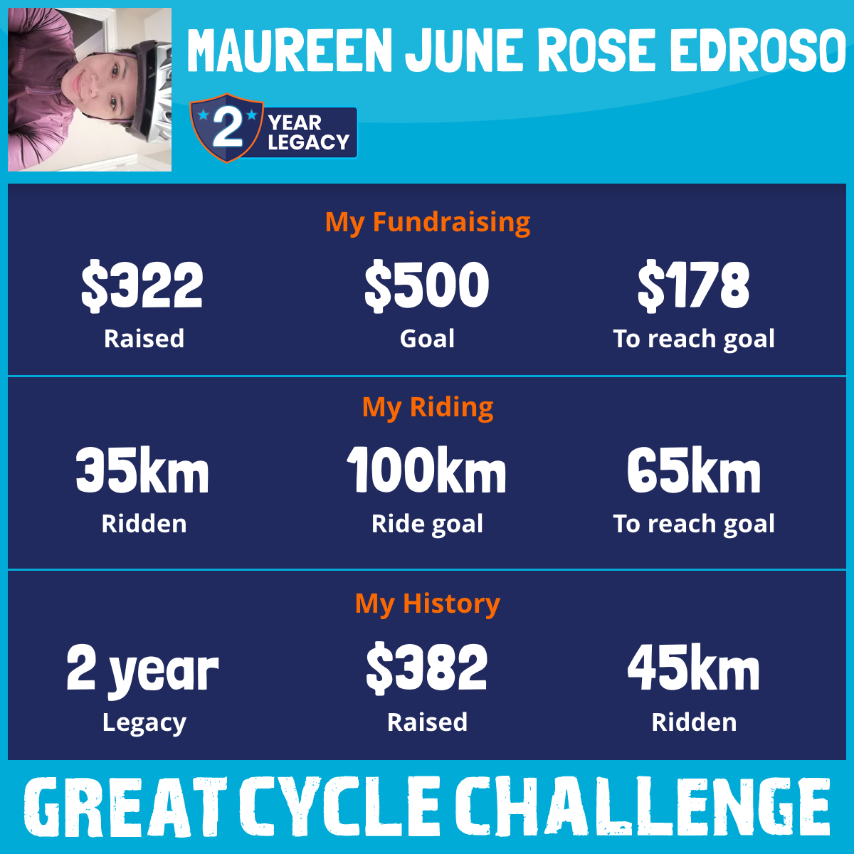 113 km Ridden$322 Raised2026