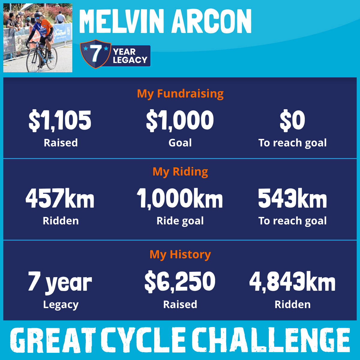 1,005 km Ridden$970 Raised2023