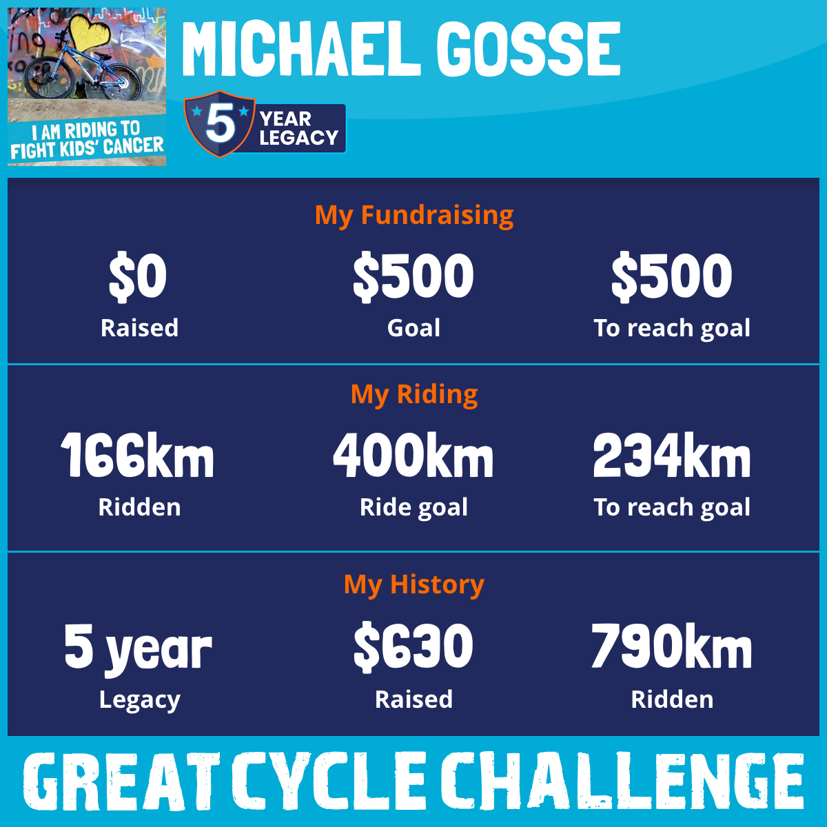 This August, I am taking part in the Great Cycle Challenge to fight kids' cancer!