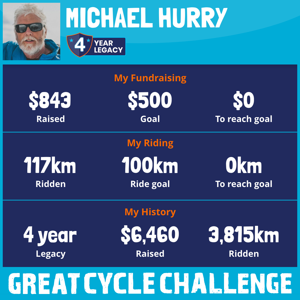 3,052 km Ridden$1,901 Raised2022