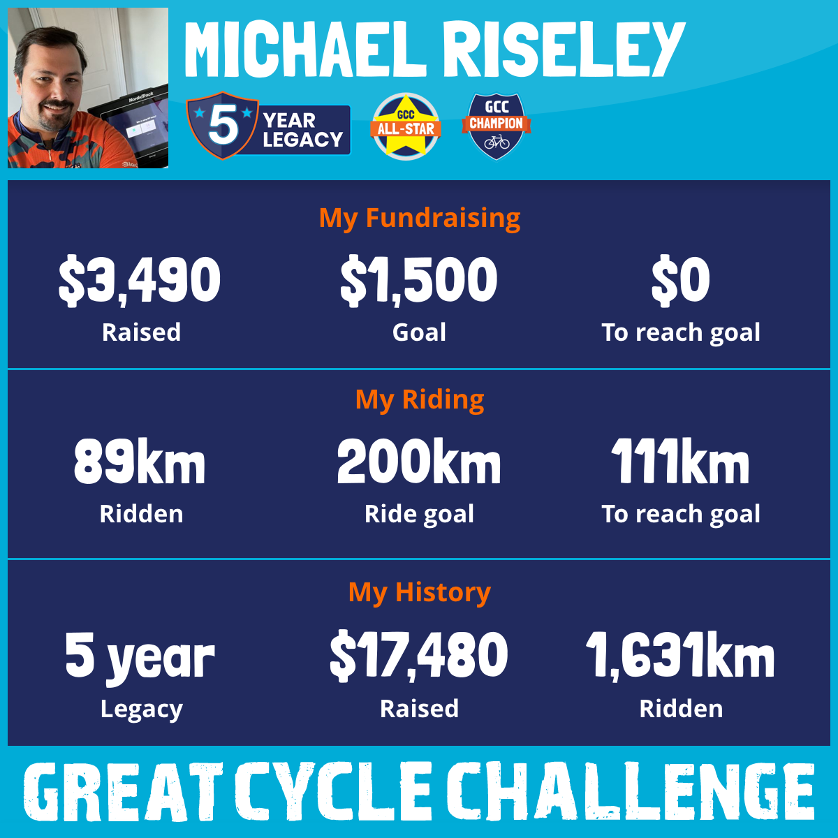 190 km Ridden$3,490 Raised2025