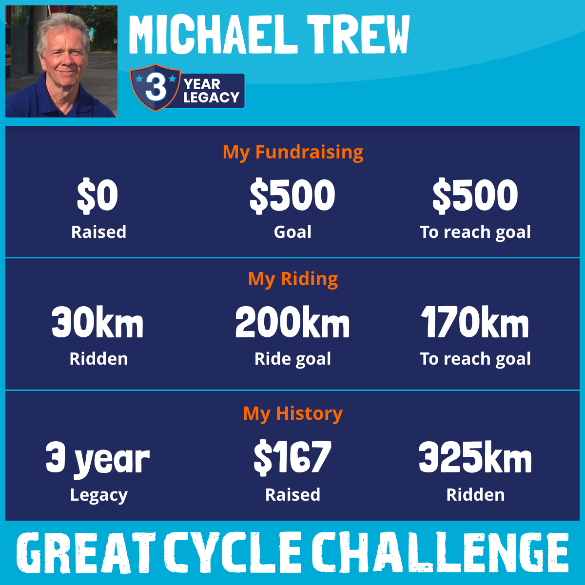 I am riding 200 km in memory of my dad, Edward Charles Trew. Please sponsor me and support my challenge to fight kids' cancer and save little lives.