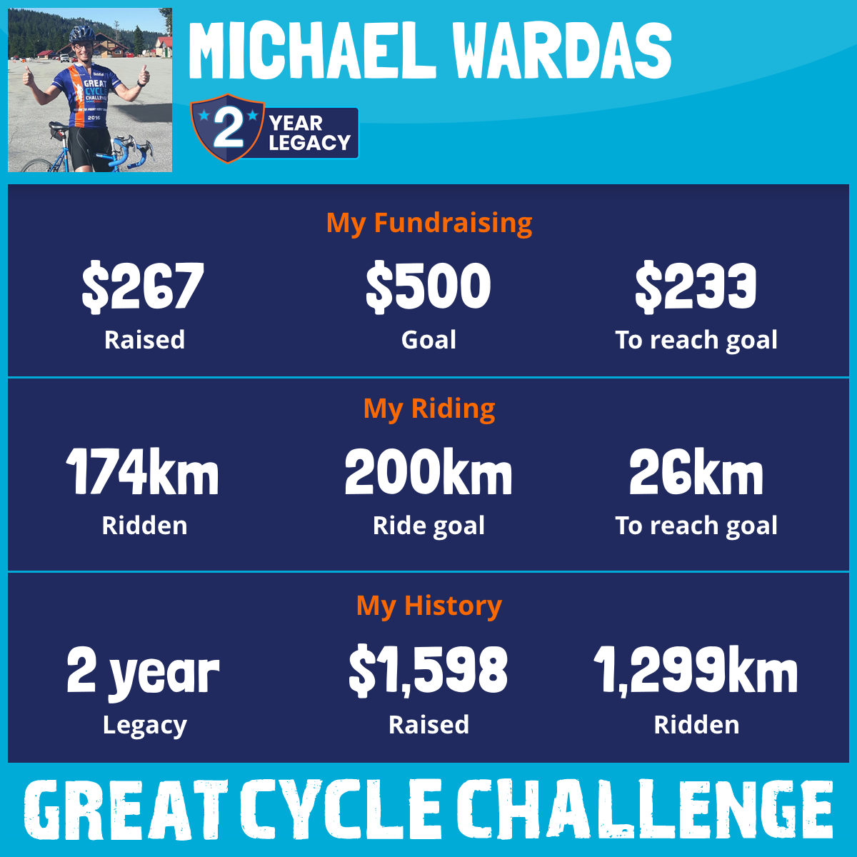 1,707 km Ridden$323 Raised2026