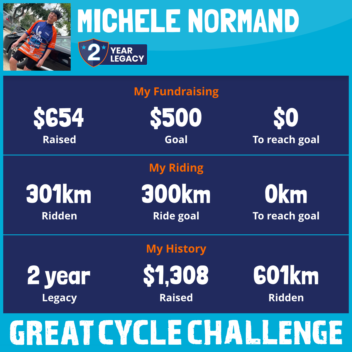 301 km Ridden$654 Raised2026