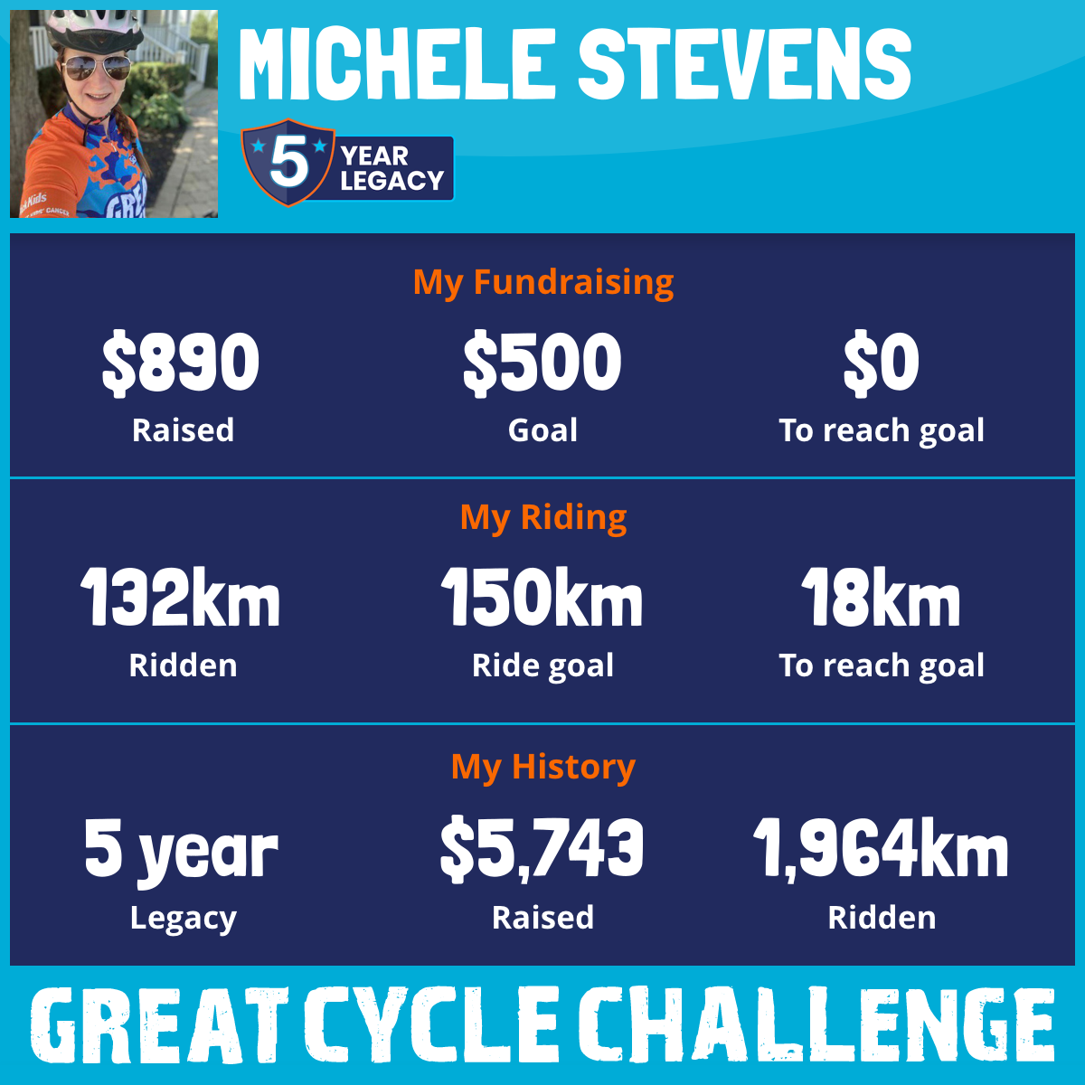 180 km Ridden$1,097 Raised2025