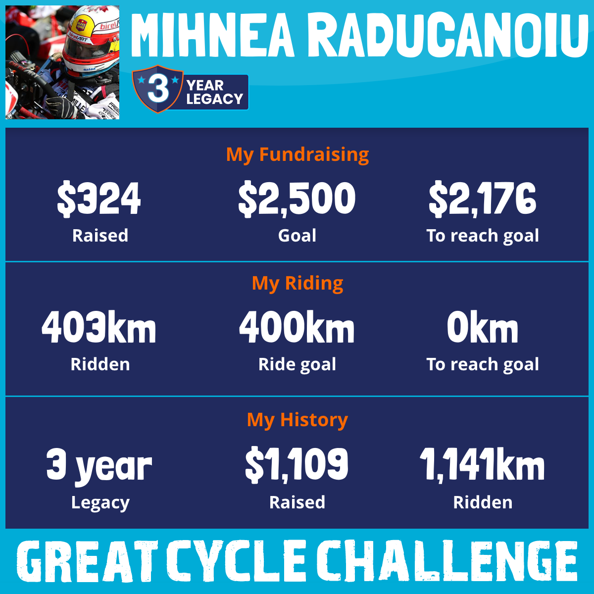 I am riding 400 km in memory of my wife, Alexandra Perebiceanu. Please sponsor me and support my challenge to fight kids' cancer and save little lives.