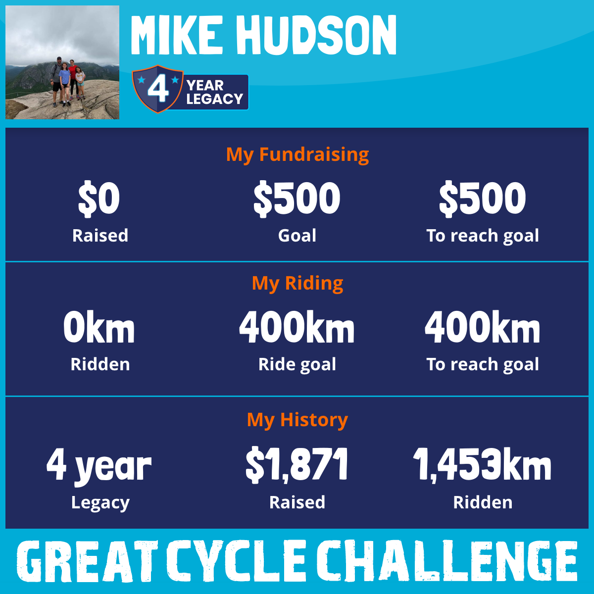 1,047 km Ridden$1,425 Raised2020