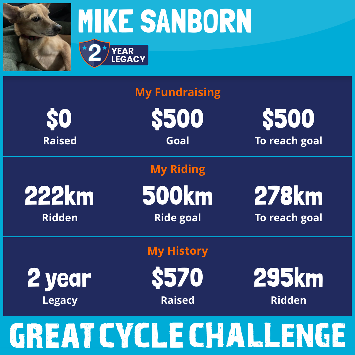 I am riding 500 km for Jen, Trevor and Family. Please sponsor me and support my challenge to fight kids' cancer and save little lives.